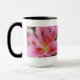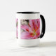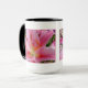 Jolie tasse de café avec un plan rapproché d'un lis rose et blanc d'astronome avec les stamens oranges. Grand pour un amant de nature ! Photo numérique par Sue Melvin