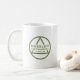 Tasse blanche de 11 oz avec logo Hassler Instruments sur les deux côtés en vert