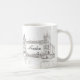 Tasse à café classique avec stylo et encre illustration du Tower Bridge de Londres. Ce dessin classique et sophistiqué noir et blanc est le cadeau parfait pour votre anglophile préféré.