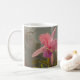 Mug à café mettant en vedette la peinture à l’huile de Martin Johnson Heade Cattleya Orchid et Three Hummingbirds (1871). Trois colibris magnifiquement colorés se perchent à côté d'une belle orchidée de cattleya rose. Un cadeau merveilleux pour les amateurs d'art floral et les amateurs d'art américain !