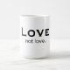 White mug with Love not love in black typography that reminds us to choose divine Love rather than egoic love.