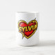 This comic-style graphic mug features the name "Sylvia" over a beautifully designed energetic heart design. This is a great gift for your friend, girlfriend, wife, and sister.