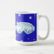 Lunettes de ski avec reflet de montagne. Lunettes de ski et motif de flocon de neige sur fond bleu. Conception de sport d'hiver ludique.