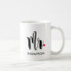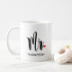 Tasse à café personnalisée M. dans un script noir moderne avec un accent de coeur rouge mignon et votre nom de famille marié. Un cadeau parfait pour un futur marié, pour un couple marié, ou pour donner votre bonté le jour de la Saint-Valentin ! Visitez notre magasin ou notre collection ci-dessous pour la Mme Mug qui coordonne.