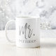 Mr. Last Name Silver Foil Wedding Day makes a great newlywed gift for your husband. This store also has the matching Mrs. Last Name coffee cup.
