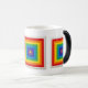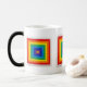 A vivid concentric rainbow square stands out on crisp white, framed by a sleek black accent that makes the red, orange, yellow, green, blue and purple bands look even brighter, creating a strong geometric focal point that feels retro, modern and a bit hypnotic, drawing the eye, lifting the mood and adding instant happy color energy.