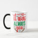 Une tasse vraiment unique. Lorsque la boisson est froide, ce n’est plus qu’une tasse noire. Lorsqu’on ajoute une boisson chaude (de l’eau, du thé, du café), votre image apparait éclatante de couleurs. 325 ml. Lavage à la main uniquement. Importé.