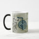 Dragonfly et bambou derrière le symbole puissant de Reiki. Cho Ku Rei, est dit pour stimuler l'énergie universelle et accélérer le processus de reiki et donner plus de clarté à l'énergie. Connu comme un symbole de protection et utilisé pour dégager l'énergie et charger les objets, y compris la nourriture et les cristaux.Ce symbole est noir avec l'aspect gaufré et l'énergie bleue brillant avec l'original Mount Fuji Art dans l'arrière - plan.