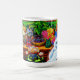Magic Mug mettant en vedette la peinture animale de Louis Wain Master of Cat College (1860-1939). Un chat blanc réfléchi aux yeux bleus saisissants se tient à côté d'un assortiment vibrant de belles fleurs. Le majestueux collège de chats se dresse dans l'arrière - plan sous un ciel rose et bleu. Un cadeau merveilleux pour l'art amoureux des chats et anglais.