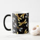 Motif sans couture avec or, bijoux, libellules brillantes avec ailes détaillées et pétillantes sur arrière - plan noir. libellule d'or.