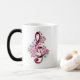 Pink treble clef with delicate, detailed pink Japanese cherry blossoms against white background painted over with light blue paint Blooming pink sakura.