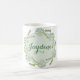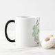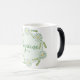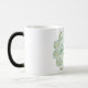 Daisy color morphing mug in pastel green and yellow, on a dotted background. Customize the name area.