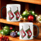 Cette tasse de Noël en céramique amusante est ornée d'une photo d'un bas rouge et vert avec un bonhomme de neige adorable, habillé d'un foulard et d'un ensemble casquette de saison. Commandez en 11 oz ou 15 az ou l'un des autres styles de buverie.