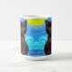 Magic Mug avec un chat noir dans la peinture de Van Gogh Starry Night! Ce chaton aux yeux bleus regarde agréablement d'un arrière - plan de tourbillons bleus et d'une lune jaune vif. Un cadeau fantastique pour les amoureux de les chats et les collectionneurs d'art hollandais !