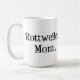 Tasse blanche " de maman de rottweiler" avec le lettrage noir et un coeur rouge lumineux à l'extrémité.