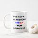 Très sympa, ma fille a adoré. Le modèle est existant. Je n'ai rien ajouté. J'espère que le texte résistera au lave-vaisselle.