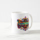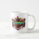This ceramic coffee mug is shown with Mardi Gras image prints.