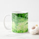 Cette jolie tasse mariage feuillue vous invitation à entrer dans un monde de paix et de sérénité. Les feuilles d'érable encadrent l'image, menant à une scène boisée en jaune, blanc et vert forêt. Personnaliser texte pour votre occasion spéciale.