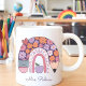 Célébrez le coeur de la salle de classe avec cette adorable tasse d'enseignant personnalisée ! Avec un arc-en-ciel pastel, un crayon, un coeur et des accents de fleurs dans les violets pastel, les oranges et les roses, cette tasse est aussi charmante qu'significative. Le nom de l’enseignant peut être ajouté pour une touche personnelle, ce qui en fait un cadeau parfait pour la Semaine de l’appréciation de l’enseignant, les fêtes ou les célébrations de fin d’année. Qu’ils sirotent du café, du thé ou du cacao chaud, cette tasse est un rappel quotidien de l’amour et du dévouement qu’ils apportent à leurs élèves. Une façon sincère et élégante de dire "merci.