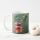 Une tasse à café inspirée par les écritures représente une photographie naturelle d'une branche de belles fleurs roses et de feuilles verts. Il présente la Bible Verse Matthieu 19:26, Jésus a dit : "Avec l'homme, c'est impossible, mais avec Dieu, tout est possible."