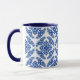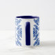 Mug dans un kimono japonais classique motif de médaillons stylisés, à quatre sens, de feuilles et de fleurs en bleu cobalt profond sur un arrière - plan blanc
