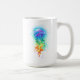 Grande méduse irisée, artistiquement dessinée, brillante, avec de longues tentacules sur le blanc, peinte sur l'arrière - plan multicolore. Méduse arc-en-ciel.