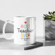 Célébrez l'éducateur de votre vie avec cette tasse personnalisée "Meilleur enseignant jamais". Il est doté d'un coeur rouge mignon et d'une typographie vibrante, ajoutant une touche unique à votre cadeau. Personnalisez-le avec leur nom et l'année pour en faire un signe d'appréciation inoubliable. Donnez le cadeau qui continue à donner, pas seulement dans le café, mais aussi dans les sourires!