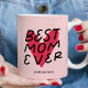 Mug à café ou tasse à thé moderne et mignon pour la Fête des Mères avec un coeur rouge et des lettres à main noire pour Best Mom Ever sur arrière - plan rose. Mettez le nom que vous voulez et vous obtenez une mignonne tasse de jour de mère personnalisée!