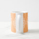 Ce mandala blanc est assis sur un arrière - plan orange clair. Les couleurs sont gaies et énergiques. Partie de la collection Rosenn Mandala.