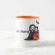 Cette tasse à thème "Halloween" personnalisable présente une mère éffrayante et son fils avec un texte personnalisé.