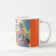 Salutations de Miami Beach carte postale rétro reproduite sur une tasse à café. Cette magnifique tasse colorée est un merveilleux complément à un décor rétro de maison ou de plage. Il fait un cadeau formidable, en stockant la farce à Noël ou à tout moment pendant les vacances.