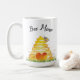 Bee Mine Valentine's Day Mug Décoré avec une aquarelle abeille et ruche d'abeille.