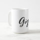 Start Gigi's day off right with a coffee or tea in this simple, personalized mug. The clean white ceramic provides the perfect backdrop for the name "GiGi," elegantly written in a dark, flowing script font. This mug is a wonderful, practical, and heartfelt gift for any occasion—Mother's Day, her birthday, Christmas, or just to remind her how special she is every time she takes a sip.