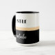 Serrez-vous comme un patron, Mug. Un design moderne et chic avec une typographie audacieuse sur un arrière - plan noir et blanc divisé par une bordure dorée au champagne. Personnalisez la tasse avec votre nom sur le dos.