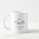 La tasse à café Mme personnalisée pour elle présente un texte en script noir moderne qui peut être personnalisé avec le nom de famille marié de la mariée et la date de mariage établie. Comprend un accent de coeur rose mignon. Fait un cadeau spécial pour la nouvelle mariée Mme!
