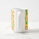 Un motif floral orange vif et jaune avec des feuilles verts nichés autour d'eux.