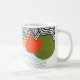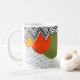 Cette tasse a un design moderne du milieu du siècle de lignes courbes et zigzag en noir, cercles en jaune, orange et vert, et un rectangle fait de lignes turquoises pointillées. Si vous voulez le même design avec des couleurs différentes, envoyez-moi un message.