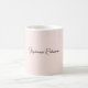 Tasse personnalisée à l'effigie d'un nom ou d'une signature en écriture cursive rose pastel avec un design féminin, élégant, minimaliste et simple. Ce design présente un nom personnalisé dans une typographie de signature de style lettrage manuscrit élégant (ou calligraphie) sur un fond rose pastel ou rose blush clair. Celles-ci sont faciles à personnaliser. Cadeau de pendaison de crémaillère élégant et féminin, également pour un anniversaire, la fête des mères, une fête d'anniversaire pour les 16 ans, un mariage, une douche de mariée, une baby shower, pour une fête de fin d'études et c'est pour la fille qui aime les choses uniques et élégantes.