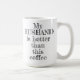 Texte humoristique "Mon mari est plus chaud que ce café" en caractères gras et lettrés à la main. Grand cadeau pour un anniversaire, un anniversaire ou la Saint-Valentin.