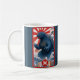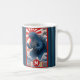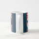 Start the day out something fierce with your favorite beverage while using this cool, striking, unique, custom monogram name coffee mug. A retro vintage, turquoise blue lizard monster appears over turquoise waves along with red and white sun graphics and your monogram initial. The background sports navy blue stripes along with your name. Personalize with your name and initial. Makes a fun and bold statement every time you use it. Makes a great gift for someone special, even yourself!