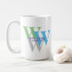 MONOGRAM INTIAL NAME IN GREY GREEN BLUE AND WHITE mug cup Facile à personnaliser. nom personnel Style de police, taille et couleurs peuvent être changés. Éléments correspondants disponibles.