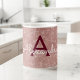 Rose Rose Gold - Bourgogne Marsala Sparkle Bling Monogramme Nom et première tasse de café. Le coussin fait le cadeau parfait pour quelqu'un qui aime l'or rose.