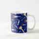 Amusant tasse pour do-it-yourself amateurs, menuisiers et menuisiers. Bleu foncé avec des outils de menuiserie modelés dessus. Ajoutez votre propre monogramme initial à l'espace personnalisable.