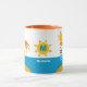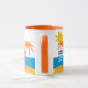 Monogramme Famille Réunion Été Vacances Café Mug, avec nom de famille personnalisable et palmiers. Le design montre soleil, palmiers, horizon bleu et plage de parties scintillant dorée, avec une typographie audacieuse. Il suffit de customiser votre nom de famille sur l'avant/l'arrière et d'ajouter votre prénom et votre prénom au milieu. Obtenez des cadeaux personnalisés pour toute la famille pour faire de votre prochain voyage un jour férié à retenir ou comme cadeau de souvenir d'un passé de vacances. Offres assorties disponibles.