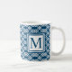 Mug Monogramme géométrique en latex moderne bleu océan