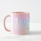 Un arrière - plan holographique branché aux couleurs pastel unicorne et arc-en-ciel rose, violet, or rose, vert menthe. Décoré avec des gouttes de parties scintillant en or rose, rose et violet. Personnalisez et ajoutez vos initiales et votre nom de monogramme. Lettres violettes et blanches. Le nom est écrit avec un script de style moderne écrit à la main avec des swashes. Pour que les swashes ne suppriment que le nom de l'échantillon, laissez les espaces ou émoticônes devant et après le nom. Un peu de glamour quotidien pour égayer votre journée !
