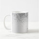 Tasse ou mug à café avec monogramme métallisé pailleté argenté et initiales. C'est le cadeau idéal pour un anniversaire sweet 16, un mariage, une douche de mariée, un anniversaire de mariage, une baby shower ou une soirée d'enterrement de vie de jeune fille pour quelqu'un qui aime le luxe et les styles chics.