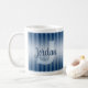 Mug Monogramme Nom du script Marine Bleu & Blancs