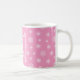 motif vectoriel moderne de flocons de neige blancs sur arrière - plan rose sur cette tasse festive. Ce design à thème hivernal comprend également un monogramme qui peut être personnalisé avec votre nom et votre initiale.
