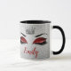 Cette superbe Mug de Monogramme Ruby Red Parties scintillant Eyes est munie d'une couronne de Reine d'argent et d'une paire de couvercles d'oeil avec une ombre de parties scintillant rouge Ruby, doublure d'effet diamanté avec de longs cils noirs sur un arrière - plan d'effet parties scintillant argent. Personnalisez avec le nom de votre choix dans Ruby Red correspondant. Conçu par Jacqueline.